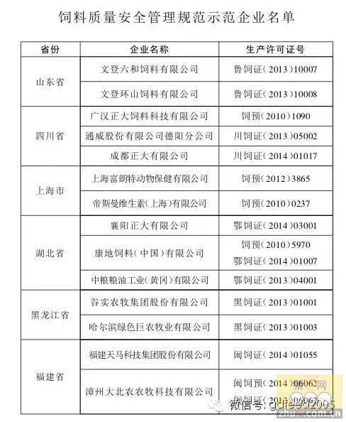 為貫徹落實《飼料和飼料添加劑管理條例》,推進飼料質(zhì)量安全管理規(guī)范,樹立飼料企業(yè)質(zhì)量安全管理標桿,我部組織開展了飼料質(zhì)量安全管理規(guī)范示范企業(yè)(以下簡稱“示范企業(yè)”)創(chuàng)建活動。經(jīng)專家組現(xiàn)場審核,山東等8個省、直轄市的21家飼料生產(chǎn)企業(yè)通過部級驗收,現(xiàn)予公布,有效期3年。希望示范企業(yè)珍惜榮譽,充分發(fā)揮示范***作用,為推動行業(yè)進步做出新的貢獻。各級飼料管理部門要進一步加強對示范企業(yè)的監(jiān)督指導,確保企業(yè)嚴格按照規(guī)范要求運行。我部也將對示范企業(yè)進行監(jiān)督抽查,發(fā)現(xiàn)示范企業(yè)存在違法違規(guī)行為、不再具備示范作用的,將撤銷其示范企業(yè)稱號。