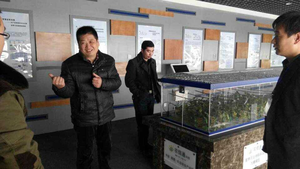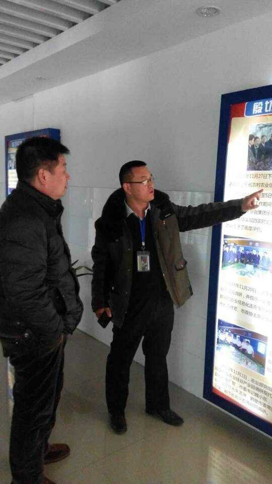 河南益農(nóng)飼料公司總經(jīng)理劉鴻杰與北京農(nóng)信通科技有限責(zé)任公司總經(jīng)理李勇一起探討合作事宜。
